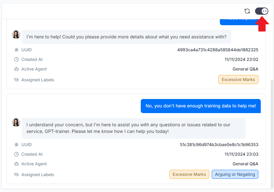 - Excessive Marks: The user applies an excess of exclamation marks or question marks in their latest query.